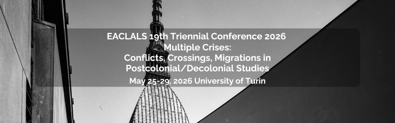 The European Association for Commonwealth Literature and Language Studies (EACLALS) 19th Triennial Conference will take place at the University of Turin, Italy, on 25-29 May 2026.